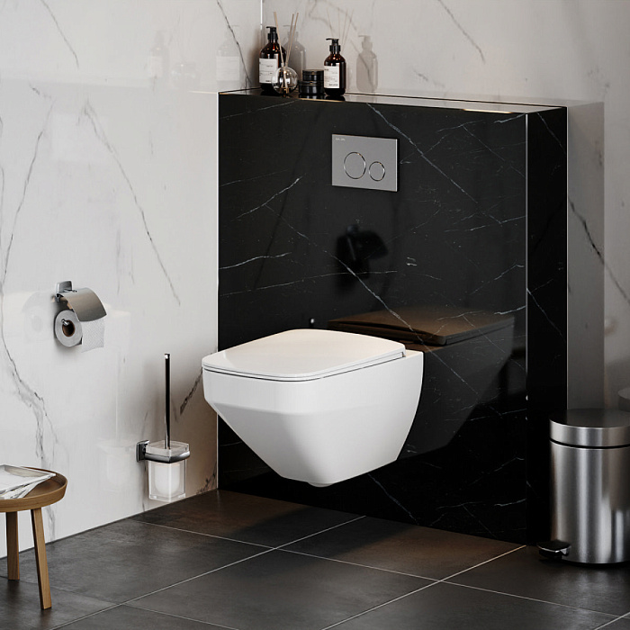 Полностью готовый к установке комплект: система инсталляции с клавишей, подвесной унитаз с сиденьем.