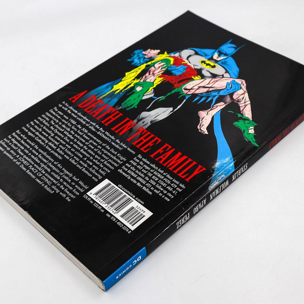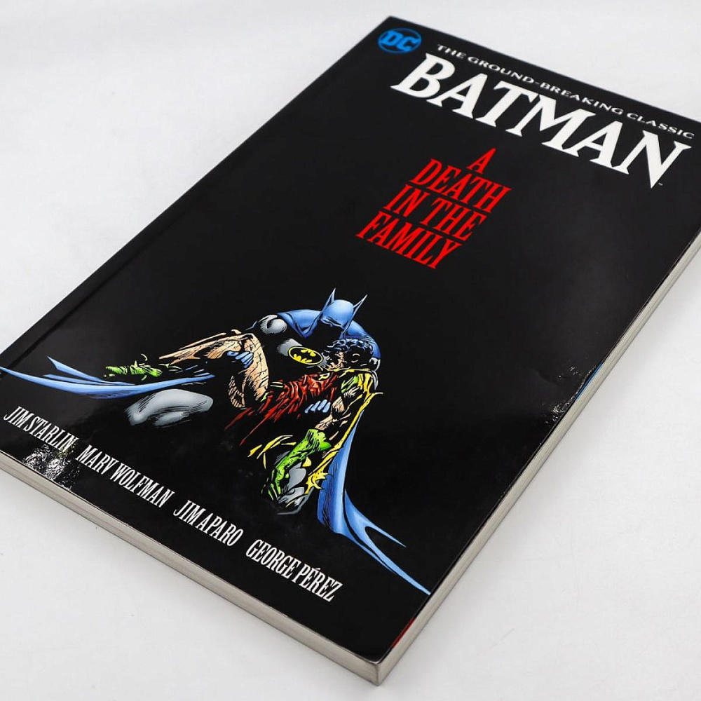 «Бэтман: Смерть в семье» — это четырехвыпускная сюжетная линия комиксов о Бэтмене 1988 года, опубликованная DC Comics. История была написана Джимом Старлином и проиллюстрирована Джимом Апаро , а Майк Миньола разработал каждую обложку. История следует за поиском Джейсона Тодда / Робина воссоединиться со своей биологической матерью после того, как Бэтмен освободил его от своих обязанностей . Однако во время своего путешествия Джокер похищает и пытает его, в конечном итоге убив. Сюжетная линия примечательна своей системой голосования из 900 номеров , в которой фанатам разрешалось звонить по двум отдельным номерам и выбирать, переживет ли Джейсон пытки Джокера или умрет из-за них. Бэтмен: Смерть в семье - https://ru.qaz.wiki/wiki/Batman:_A_Death_in_the_Family