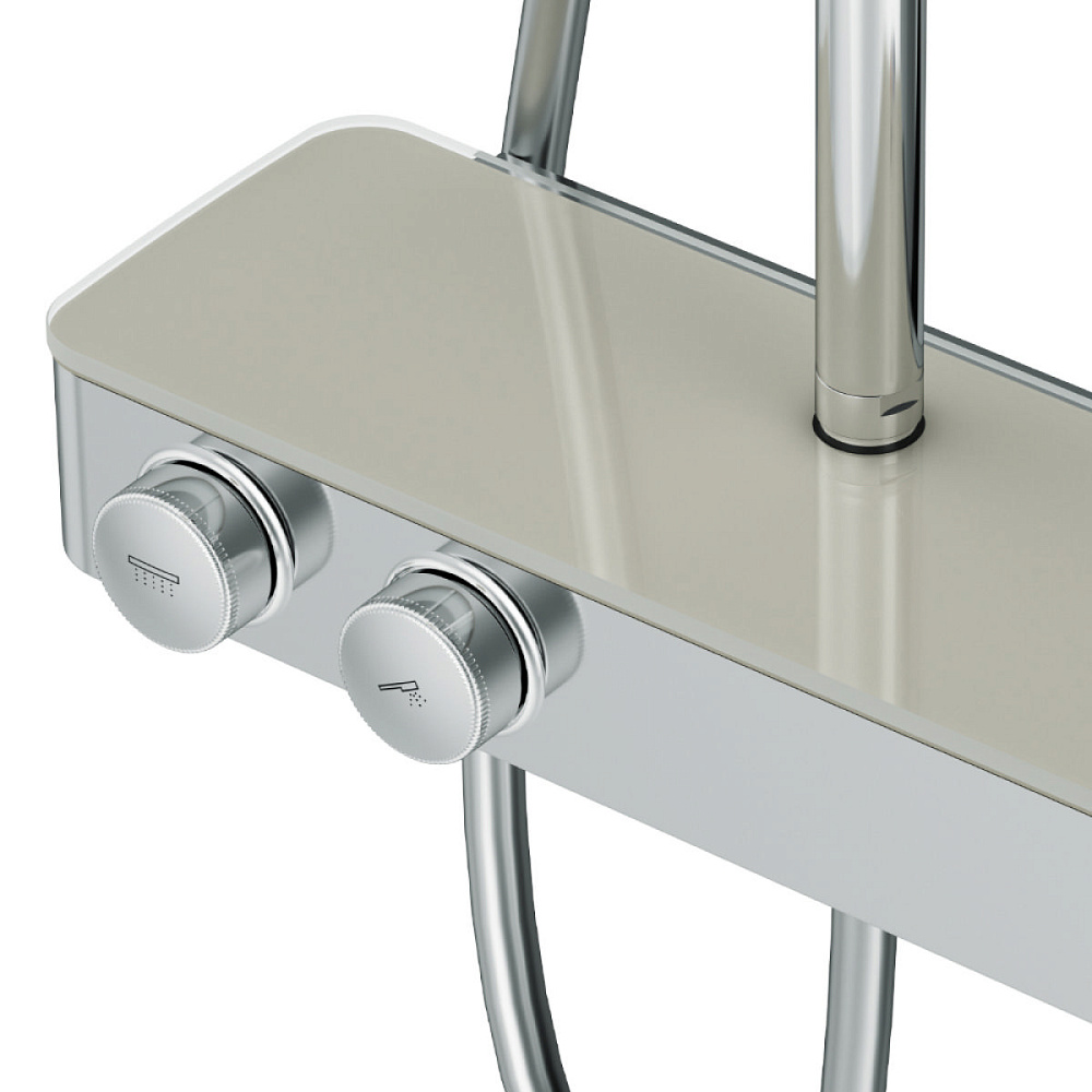 Душевая система Inspire V2.0 – это новый уровень удовольствия от принятия душа благодаря возможности индивидуальной настройки. Вы можете управлять верхним и ручным душами с помощью удобных контроллеров, расположенных на передней панели. Включайте воду легким нажатием, меняйте напор плавным поворотом ручки – и наслаждайтесь идеальным душем снова и снова, ведь система запоминает выбранные вами параметры. Продукт оснащен термостатическим смесителем для поддержания неизменной температуры воды. Верхняя часть смесителя выполнена из глянцевого стекла и является интегрированной полочкой для нужных мелочей при приёме душа. Удивительно тактильный ручной душ за счёт материала поверхности soft touch.