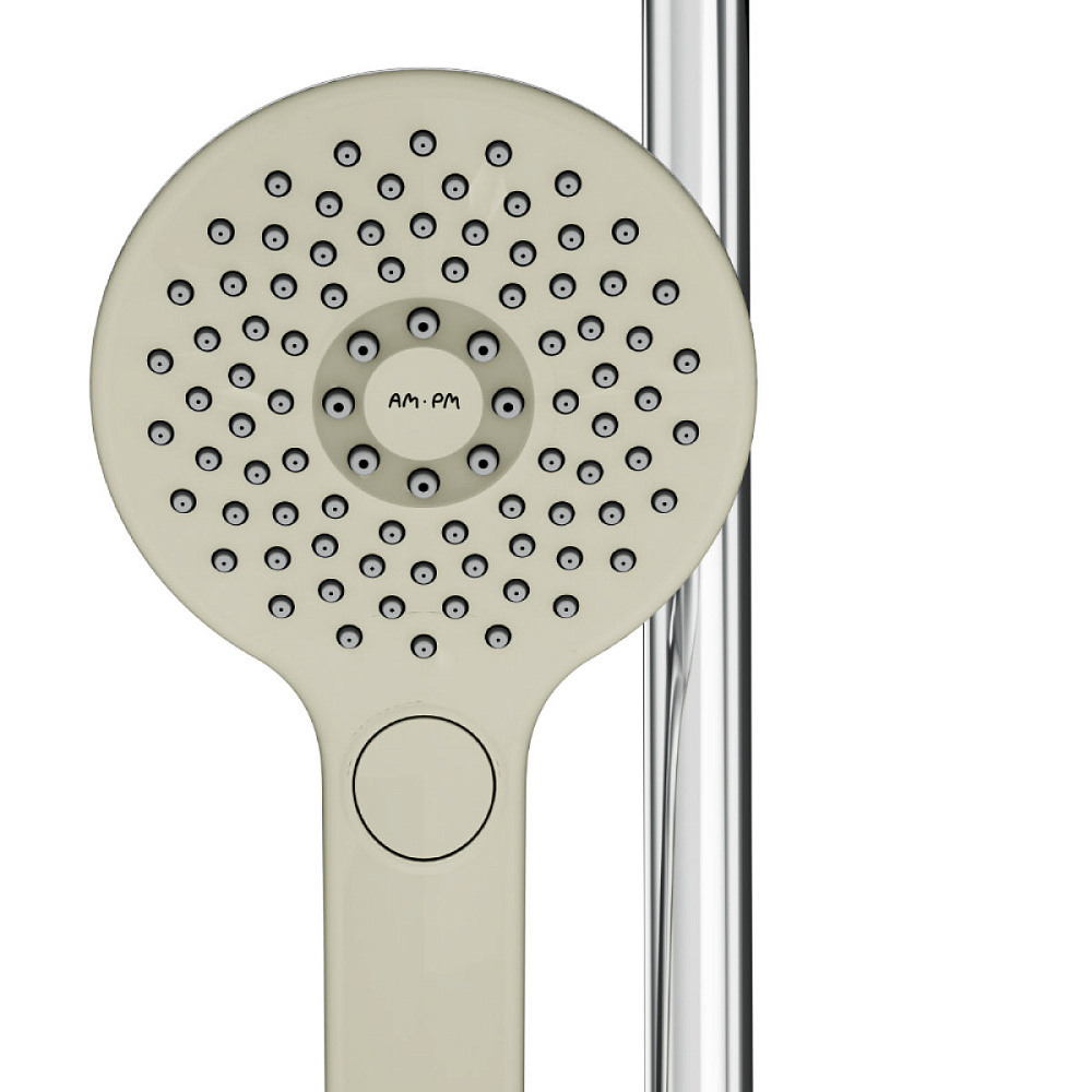 Минималистичный дизайн Hi-Tech/ Эксклюзивный слайдер AM.PM: для фиксации необходимо всего пол-оборота; Три режима ручного душа: Spray, EnerJet, Spray + Massage. Удивительно тактильный ручной душ за счёт материала поверхности soft touch.