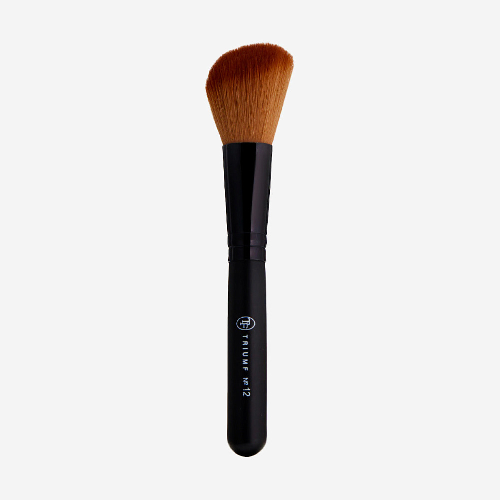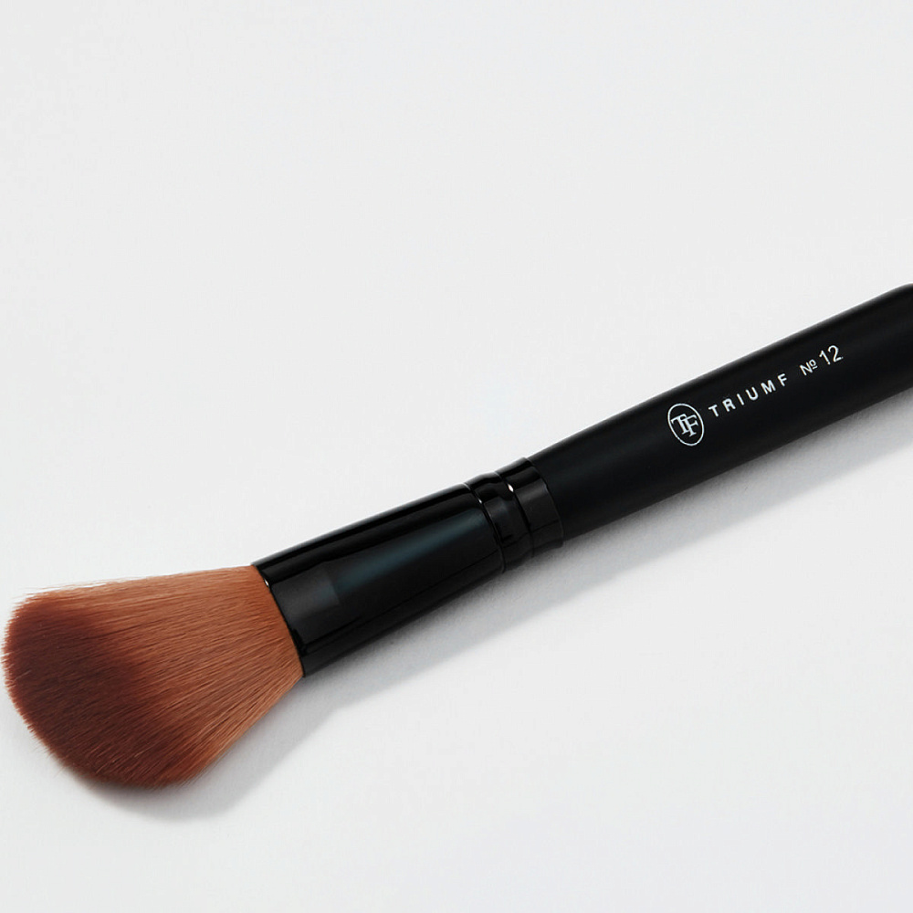 Кисть с угловым срезом подходит для создания акцентов – подчеркивание скул, высветление зон. Поможет смоделировать идеальный овал лица.