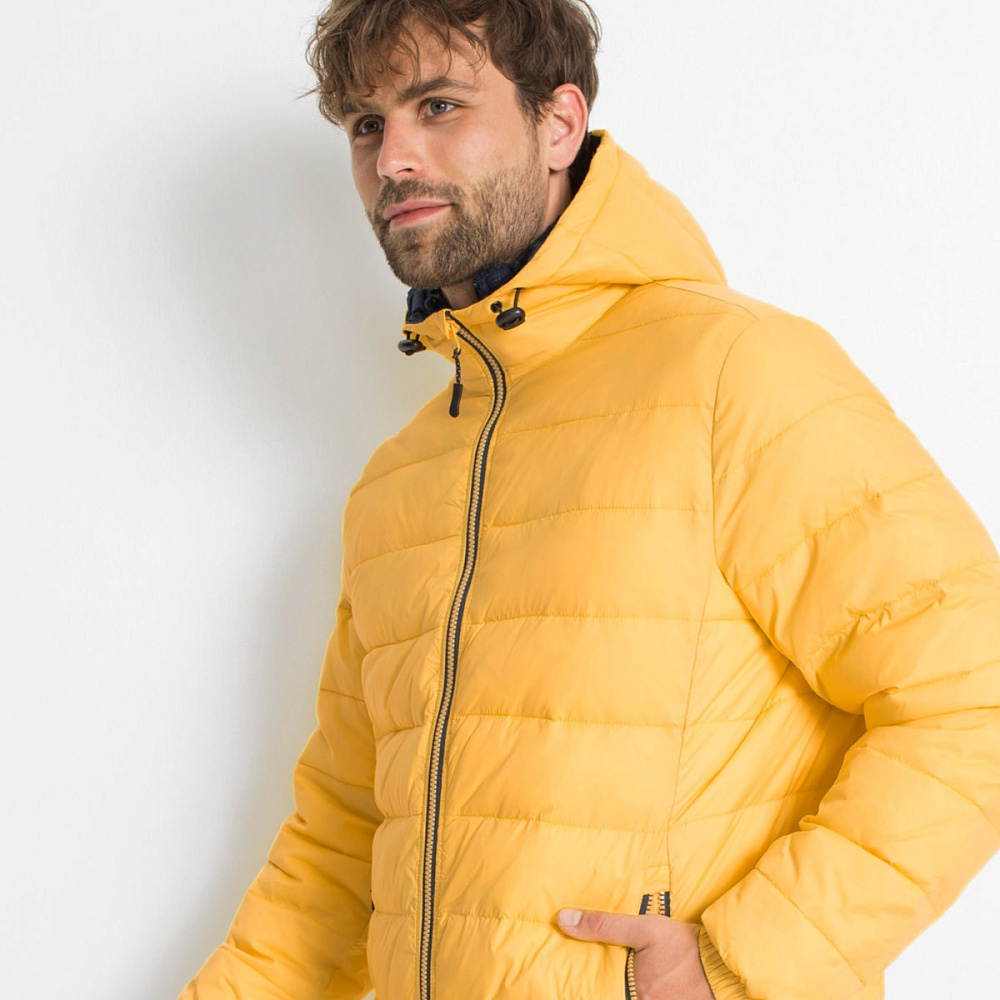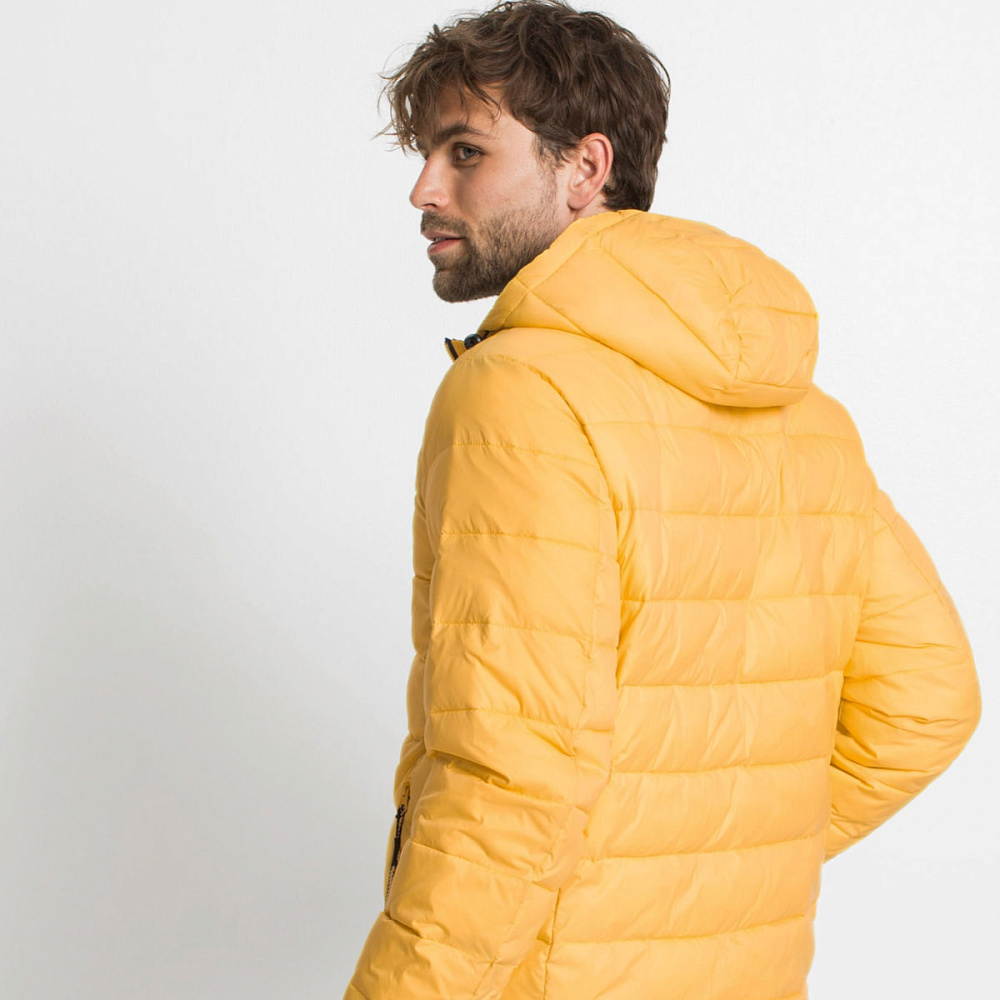 Куртка класс, но желтая ткань просвечивает и видны комочки синтепона на темном фоне синей подкладки. Очень жаль.