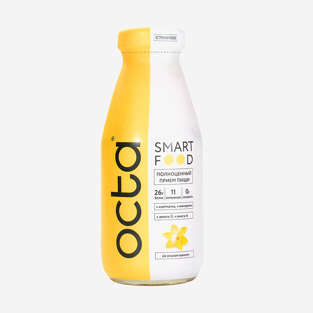 Octa — напиток, готовый быстро, качественно, а главное полезно спасти Вас от голода в любое время дня и даже ночи. Одна порция может заменить ваш завтрак, обед, ужин или просто перекус, а вкус натуральной ванили обеспечит не только сытость, но и отличное настроение.