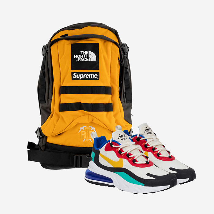 Отправляйтесь в поход в удобных кроссовках, взяв с собой вместительный рюкзак. Удобные кроссовки Nike Air Max со специальными вставками помогут пройти не длинный путь и не устать. А в рюкзак Supreme x The North Face поместится все необходимое. Благодаря удобным застежкам на рюкзаке и возможности регулировать лямки вы не почувствуете его вес.