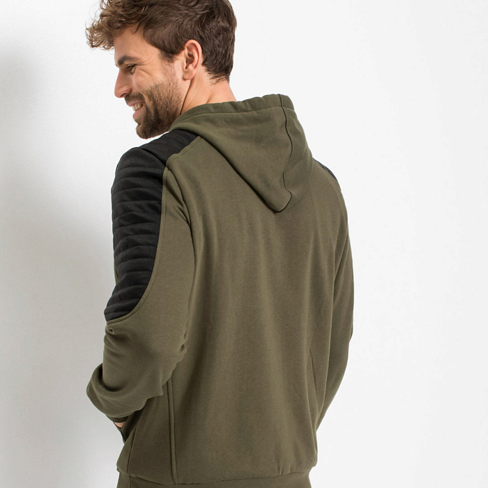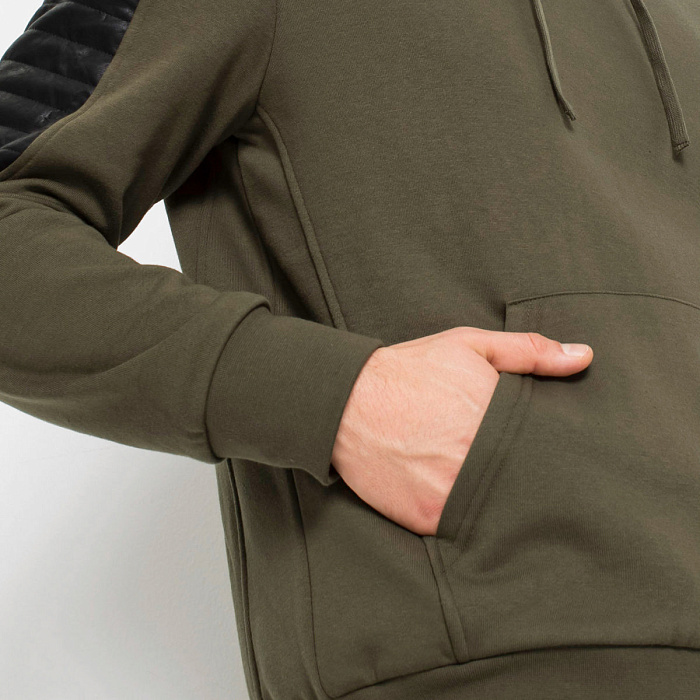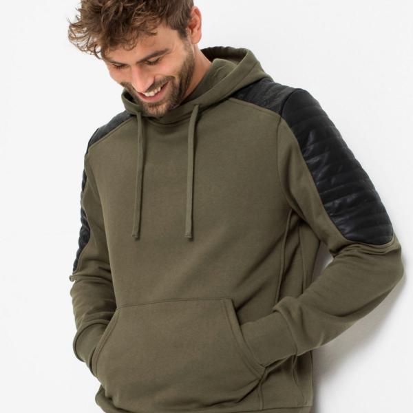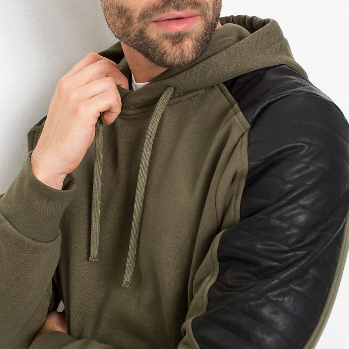Свитшот в байкерском стиле со вставками из искусственной кожи на рукавах.
