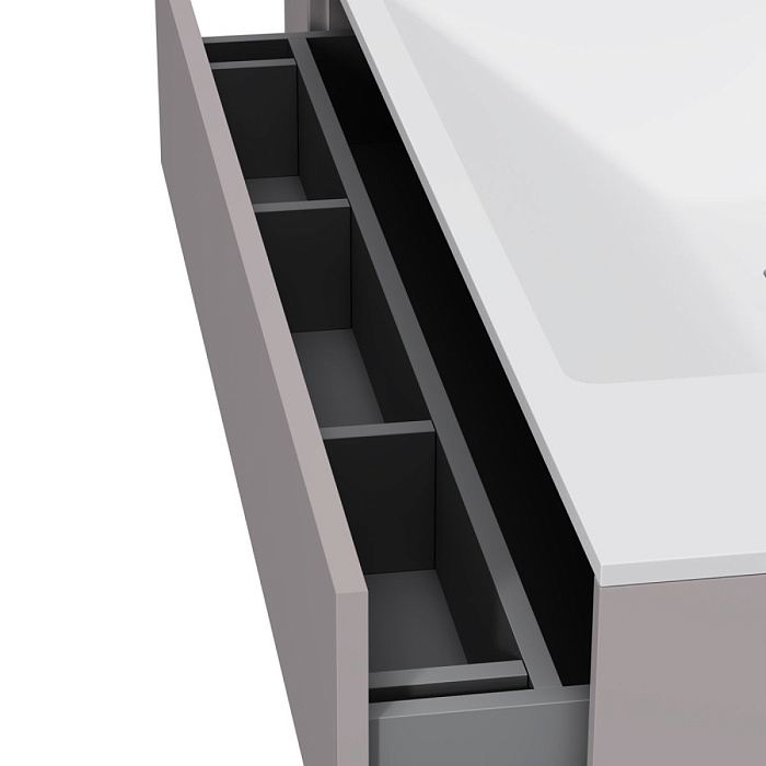 Абсолютно новый дизайнерский взгляд на функциональность: фасад-органайзер встроен в переднюю часть ящика, позволяя самому необходимому всегда быть под рукой.